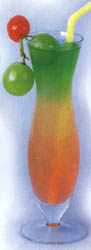 Смесь приготовить в стакане со льдом и подать в небольшом бокале, на край которого подвесить кружок лимона. "Ямайка"